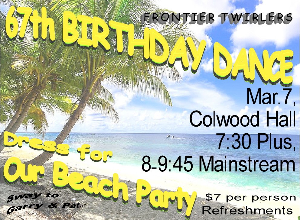 COMING Events Posters in date order for upcoming Lower Vancouver Island events together with posters for selected events outside our Region. Scroll down to view them all.Visit our CALENDAR page for the details of local dance events. Quick List: FEBRUARY 2026 DANCES (pdf) Mavericks Square Dance ClubMARDI GRAS MADNESSwith Callers/CuersMARILYNNE CUNNINGHAM & LORNE CLAYTON Cordova Bay United Church HallFriday, February 20, 2026 Mavericks Square Dance ClubLUNAR NEW YEAR RED AND GOLDwith Callers/CuersMARILYNNE CUNNINGHAM & LORNE CLAYTON Cordova Bay United Church HallFriday, March 6, 2026 Frontier Twirlers Square Dance Club67th BIRTHDAY DANCE – OUR BEACH PARTYWith Caller & CuerGARRY DODDS & PAT ZEEMANColwood Community HallSaturday, March 7, 2026 Country Cousins Square Dance ClubLUCKY LEPRECHAUNS DANCEwith Caller/CuerKIRK ROCKERBIECordova Bay United Church HallSaturday, March 14, 2026 Victoria & District Caller Teachers Assn.FREE SUNDAY WORKSHOPColwood Community HallSunday, March 15, 2026 Lower VI Western Square & Round Dance Assn.SWING INTO SPRING(LVIWSRDA & UVISDA JOINT DANCE)with Caller/CuerGARY WINTER, Sherwood Park, ABColwood Community HallSunday, March 29, 2026 Victoria & District Caller Teachers Assn.ROUND DANCE PARTYwith a Panel of CuersColwood Community HallSunday, April 12, 2026 Watch for poster closer to event date. Victoria & District Caller Teachers Assn.FREE AFTERNOON MAINSTREAM DANCEwith a Panel of Callers and CuersColwood Community HallSunday, April 19, 2026 Upper Vancouver Island Caller Teachers Assn.2026 FRESHMAN FROLICwith a Panel of CallersNanoose Place – 2925 Northwest Bay RoadSunday, April 26, 2026 Victoria & District Caller Teachers Assn. andLower VI Western Square & Round Dance Assn.2026 SPRING ROUND-UPwith a Panel of Callers & CuersColwood Community HallSunday, May 3, 2026 Country Cousins Square Dance Club70th BIRTHDAY DANCEwith Caller/CuerKIRK ROCKERBIEColwood Community Hall(Note special location)Saturday, May 9, 2026(Note special time: 3:00-5:00 pm) Ripple Rockets Square Dance ClubBLAST OFF 2026Quinsam Hall, 102-2005 Eagle Dr., Campbell River, BCFriday, July 15 to Sunday, May 17, 2026 Vancouver & District Caller/Teachers Assn.SPRING FLING PLUS DANCEwith aPANEL OF CALLERS AND CUERSKennedy Hall, 8870 120th St., Surrey, BCSunday, May 31, 2026 Upper Vancouver Island Caller Teachers Assn.JOINT UVICTA-UVISDA DANCENanoose Place – 2925 Northwest Bay RoadSunday, June 7, 2026 Watch for poster closer to event date. BC Square & Round Dance FederationCALLERS SCHOOLFeaturing CALLERLAB Accredited CoachesBARRY CLASPER, Toronto, ON &DOTTIE WELCH, Lawrencetown, NSOkanagan College – Penticton Campus583 Duncan Ave. W., Penticton, BC V2A 8E1Friday, July 10 to Tuesday, July 14, 2026 Callers School Registration Form (pdf) 24th CANADIAN NATIONAL FESTIVAL 2026Penticton Trade & Convention Centre273 Power St., Penticton, BC V2A 7K9Wednesday, July 15 to Saturday, July 18, 2026 24th Canadian National Festival 2026 Website Ocean Waves Square Dance ClubCATCH THE WAVEUnion Bay Community Hall5401 Island Highway South, Union Bay, BC V0R 3B0Friday & Saturday, July 24 & 25, 2026 Star Dusters Square Dance ClubACROSS THE POND WEEKENDPowell River, BCThursday, Friday, & Saturday, August 20, 21, & 22, 2026